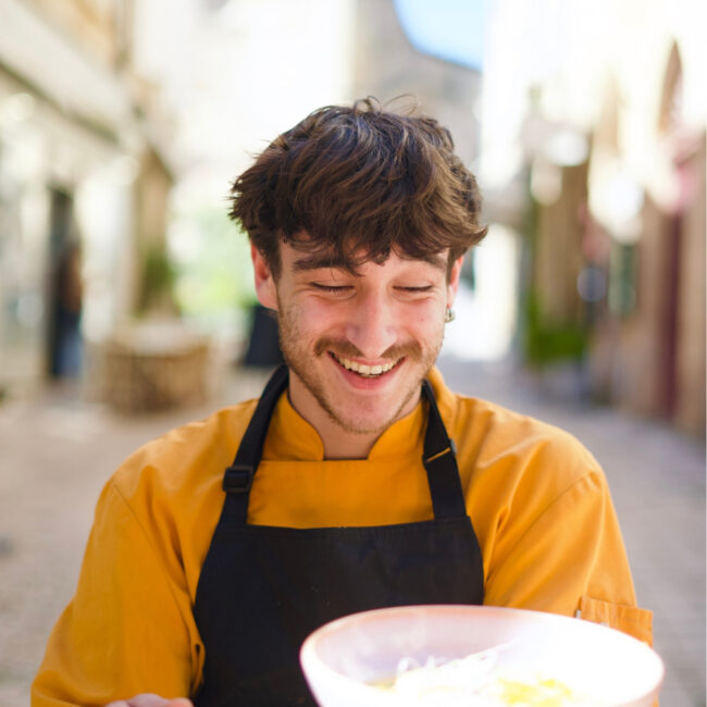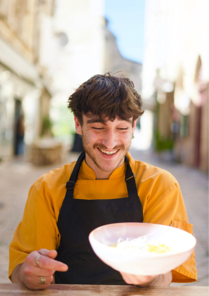 11,50€pêche, magret séché, tomates cerises, sauce pesto